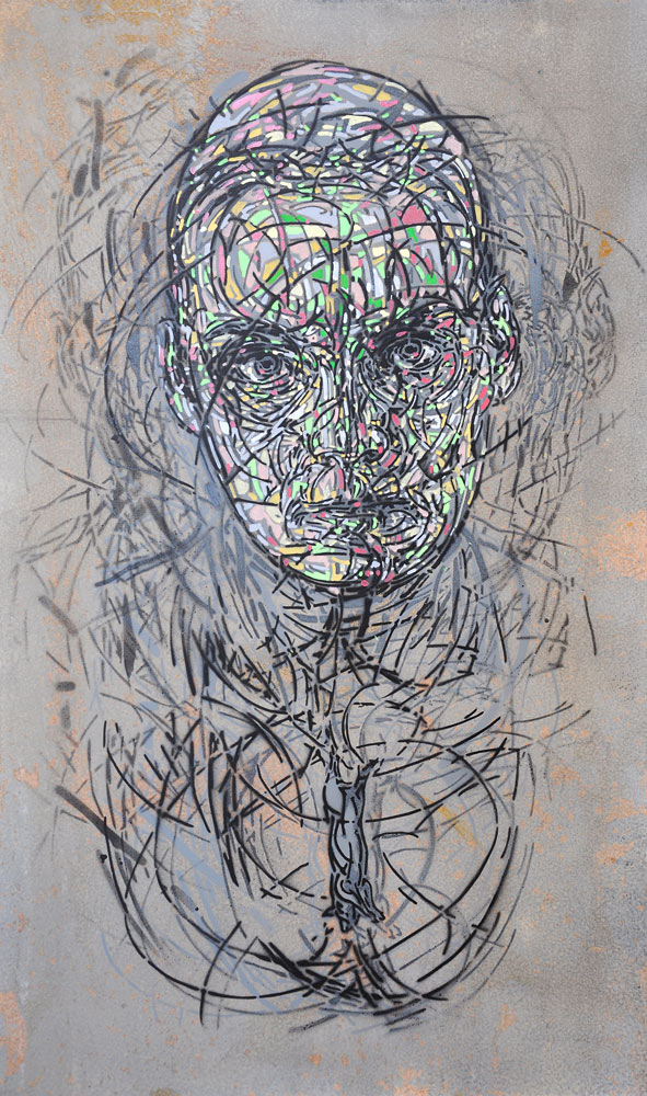 Akryl a sprej na plechu