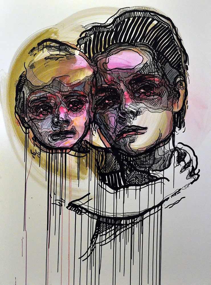 Tuš a akrylové fixy na plátně