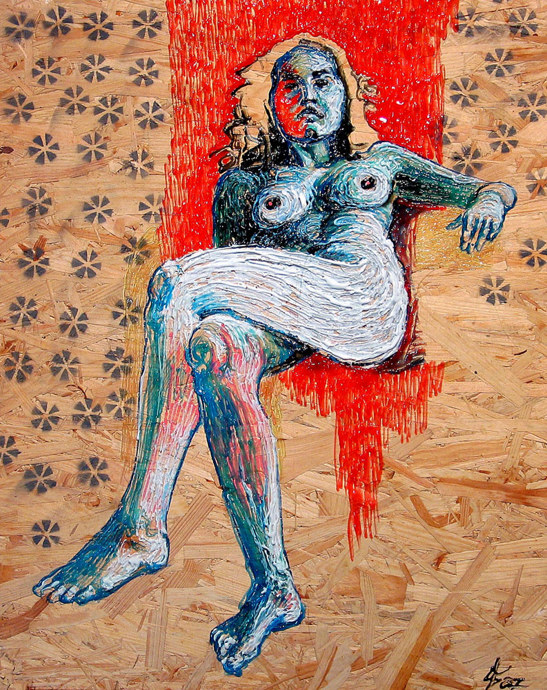 Kresba tavnou pistolí na dřevotřísce