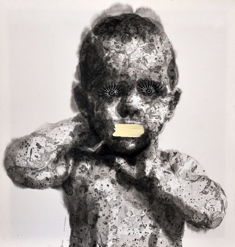 Tuš a akryl na hedvábí