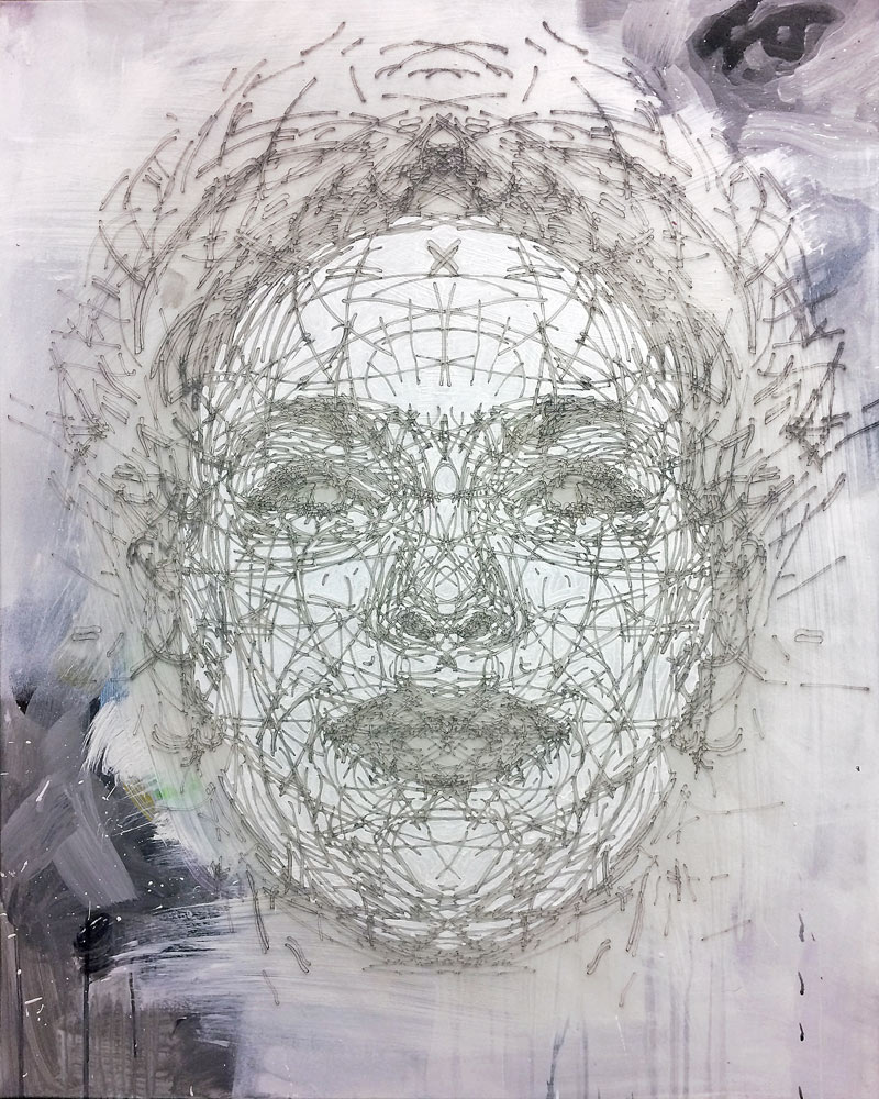 Kresba laserem, akryl na plátně