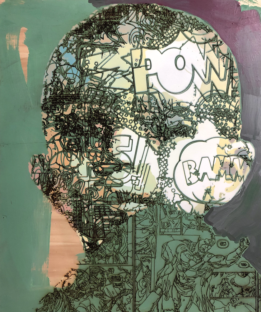 Kresba laserem, akryl, překližka