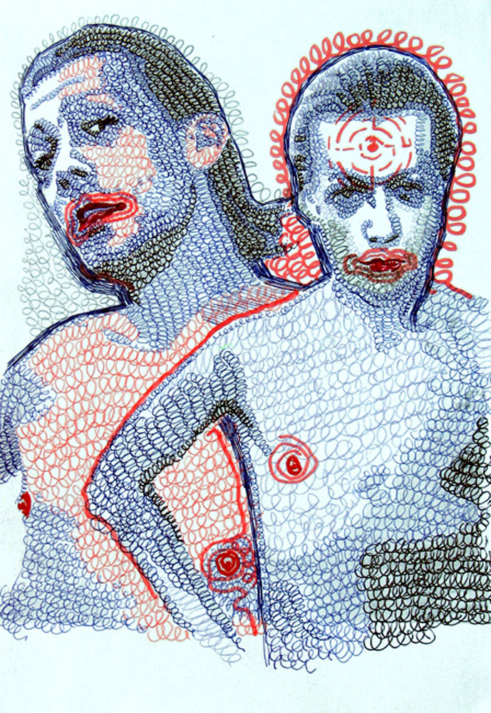 Propiska a pastelka na papíře