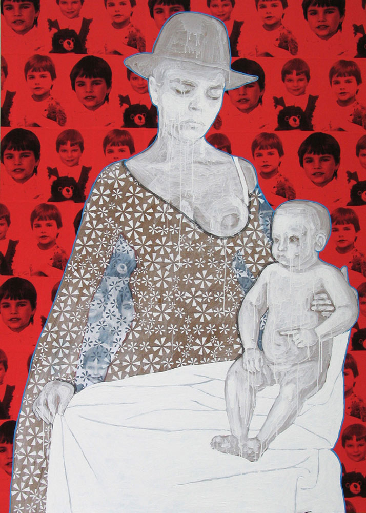 Koláž a akryl na sololitu