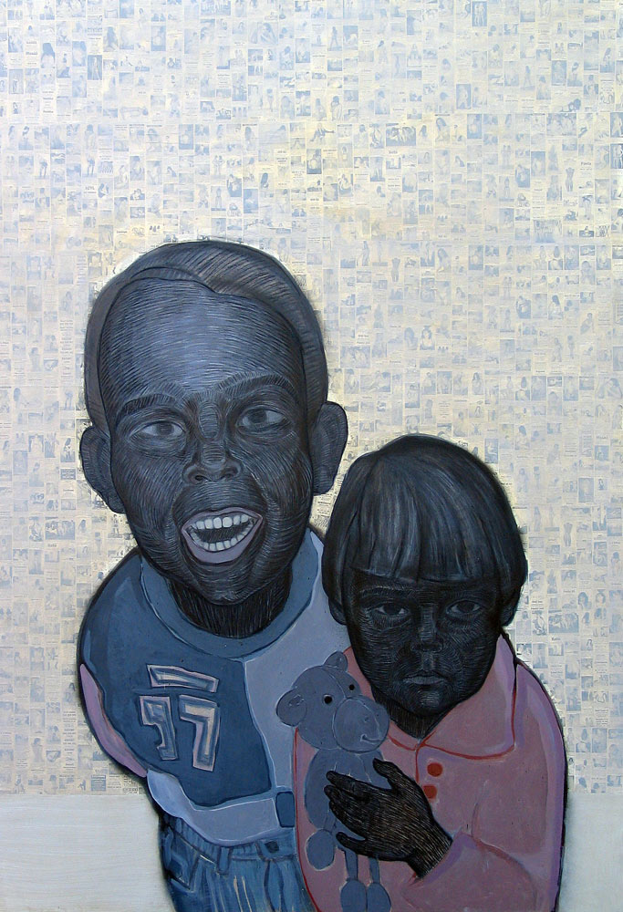 Koláž a akryl na sololitu
